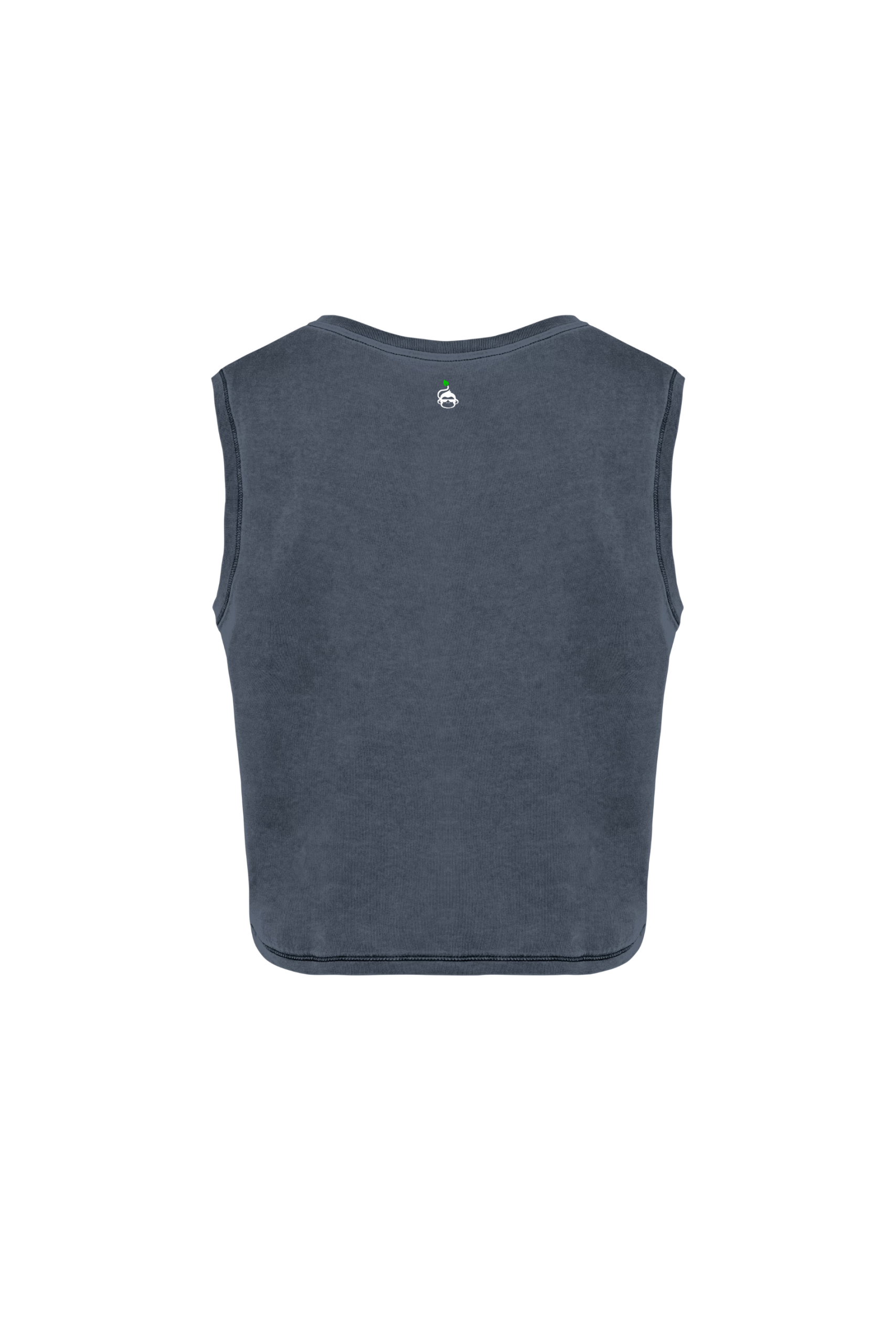 Descubre la camiseta crop sin mangas para mujer, confeccionada con 100% algodón orgánico peinado Ringspun para ofrecerte suavidad, comodidad y sostenibilidad en una sola prenda.