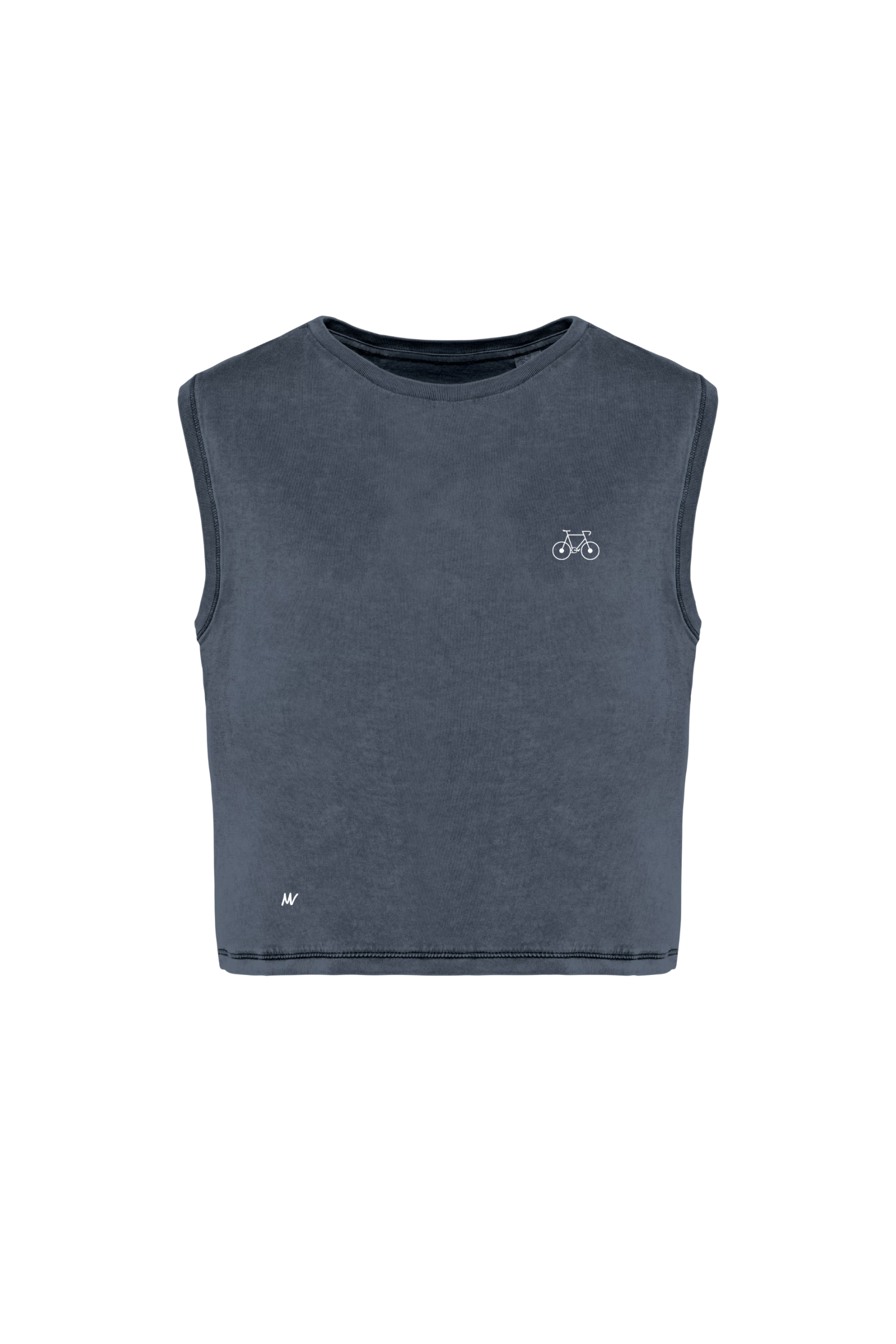 Camiseta crop sin mangas, 100% algodón orgánico, corte relajado.